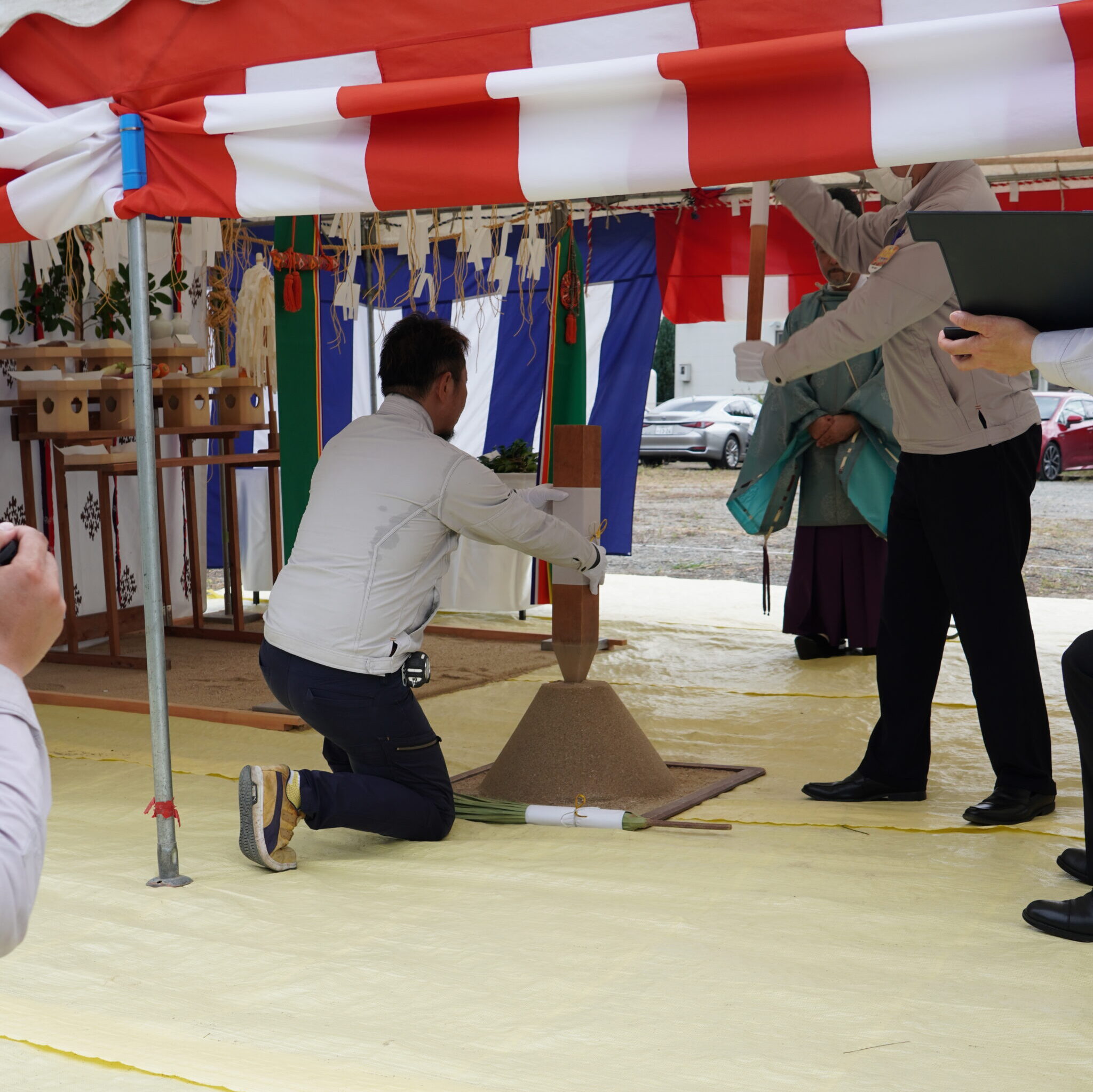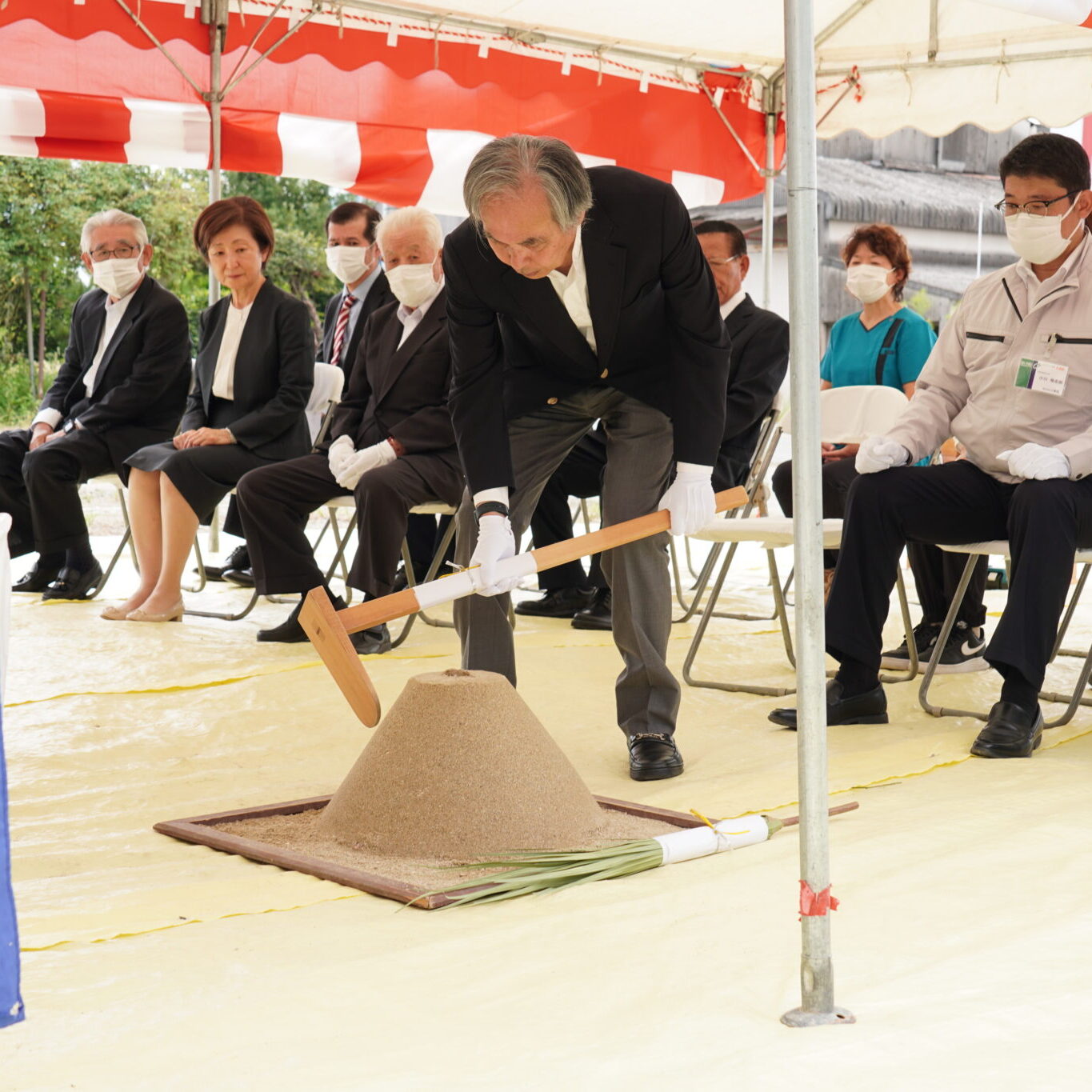 先日の良き日、就労継続支援B型 Hugワーク起工式を関係者の方々多数出席いただき執り行いました。